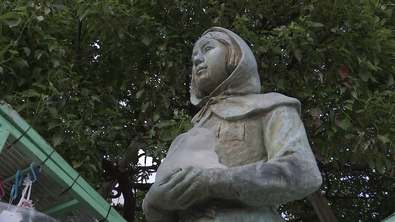 高木さんをモデルにした像が建てられています。