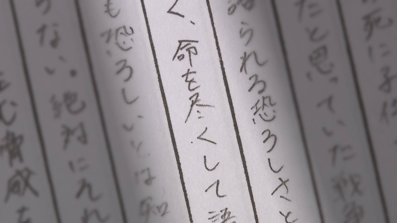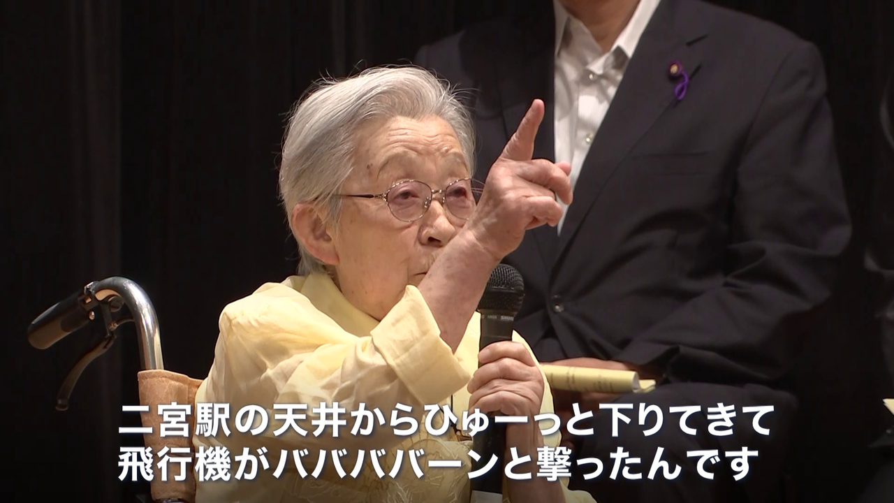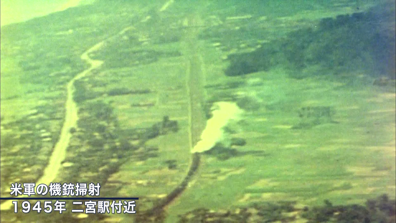 「あの二宮駅の天井からひゅーっと下りてきて。飛行機が。ババババーンと撃ったんです。(父親の)左のここから入った弾が、火葬したらちょうど人差し指くらいの弾が出てきました。」