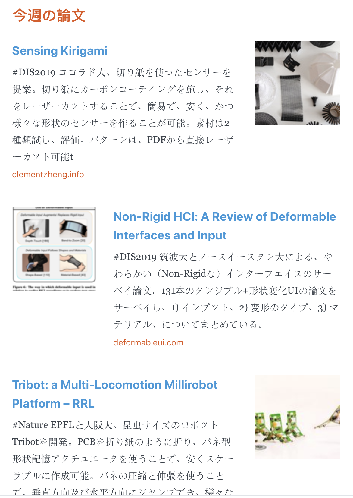 ちなみに、メールでも配信してます。Gmailだと、あとで情報の検索がラクなので、こういうストック的なものは、メルマガのがあっている気がします。というか、自分が欲しかったので作りました。(個人的には研究紹介系のメル配信を結構購読していて、日本のだとpiqcyさんの機械学習系のメルマガがかなりおすすめ。もちろん無料です。)