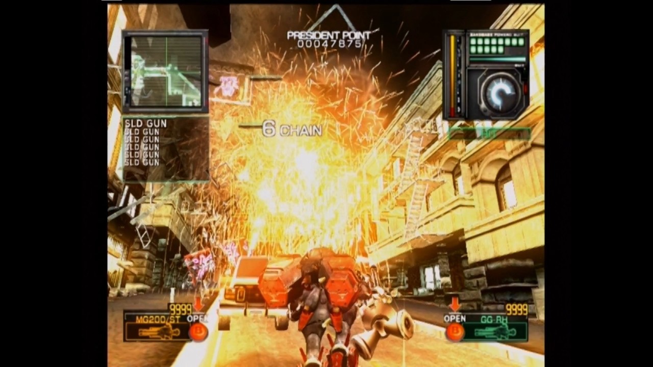 『O・TO・GI』『O・TO・GI 百鬼討伐絵巻』『ダブルスティール』など初代XBOXには破壊の気持ち良さを重視した作品が幾つも存在した。そしてその中の一本である『メタルウルフカオス』は大統領がパワードスーツに乗り込み破壊の限りを尽くすというコンセプトの時点でぶっ飛んだ特に尖ったタイトルだった。