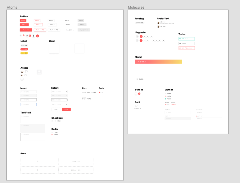 複数のページや状態変化があるようなサービスだと、コンポーネントを組み合わせていくやり方は非常にやりやすいです。(小規模なサービスや、静的なページだとAtomic Designのメリットを享受しづらいと思います。)