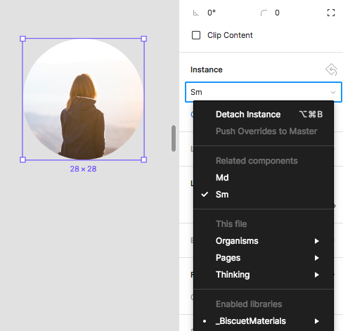 「avatarのMd(Medium)を使ったけどちょっと大きいから、Sm(Small)にしたいな......」という変更も以下のように選択肢がでてきて変更できます。