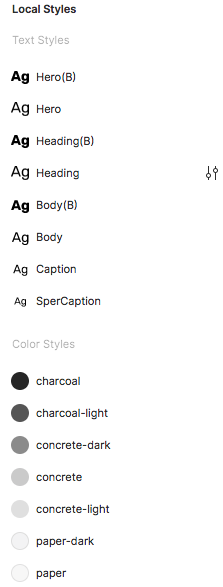 スタイルは、以下のようにLocal Stylesとして「Text、Color、Effect(影)、Grid」の4つを定義しています。