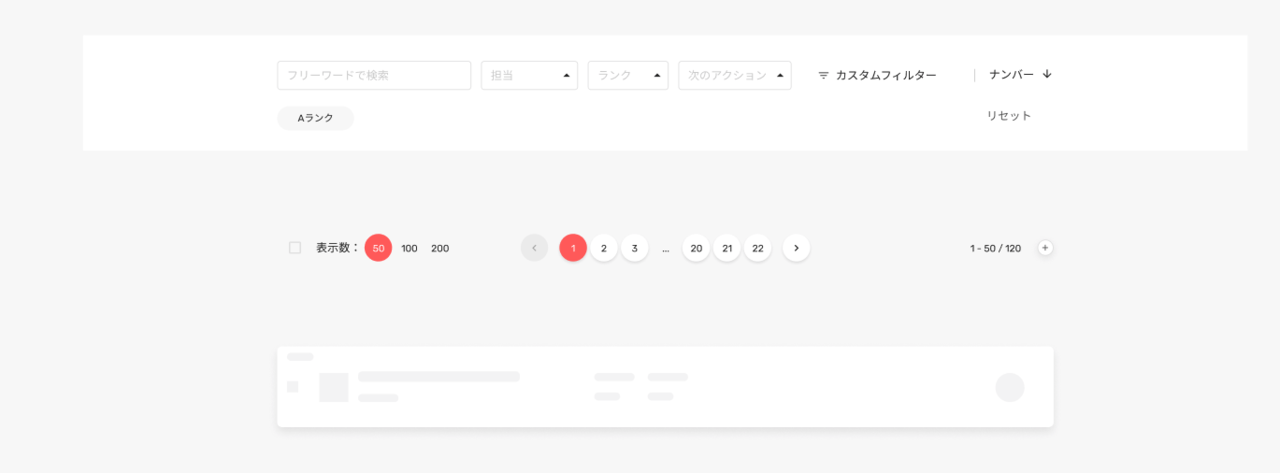 ここでは、リスト画面で必要なコンポーネントである「フィルターするもの」「ページネーションなど表示を変えるもの」「リストのアイテム」といったものを作っています。